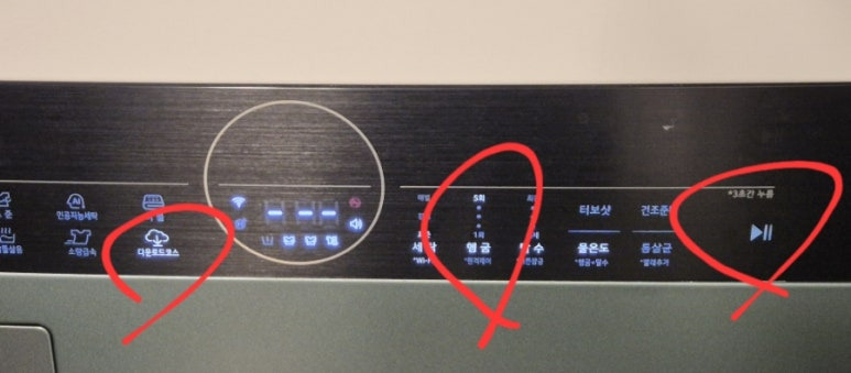 세탁기를 켜신 다음에 "다운로드 코스"를 누르시면 됩니다.