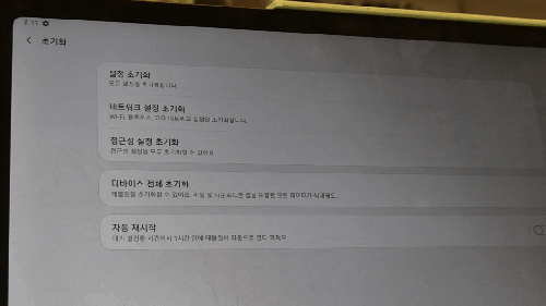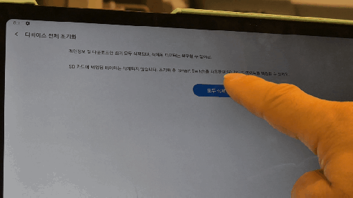 "모두 삭제"를 누르시면 태블릿 초기화가 됩니다.